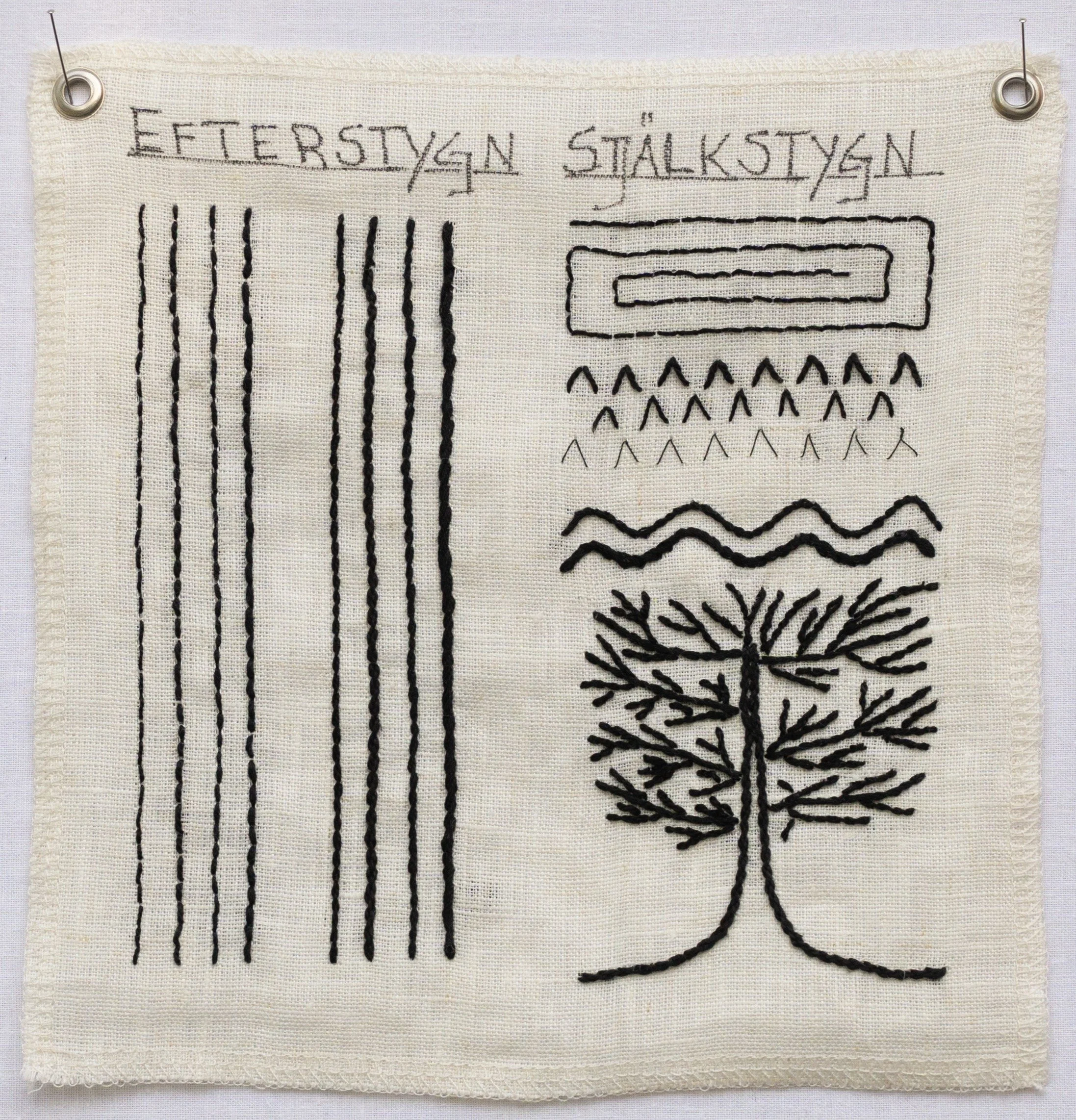 Förstygn - Kan användas på många olika sätt. Variera stygnets riktningar och skapa symetriska former. Lägg dem olika tätt och skapa skuggningar. Använd olika tjocklek på tråden för att skapa struktur. Du kan också trä en tråd genom förstygnen och skapa fina mönster.